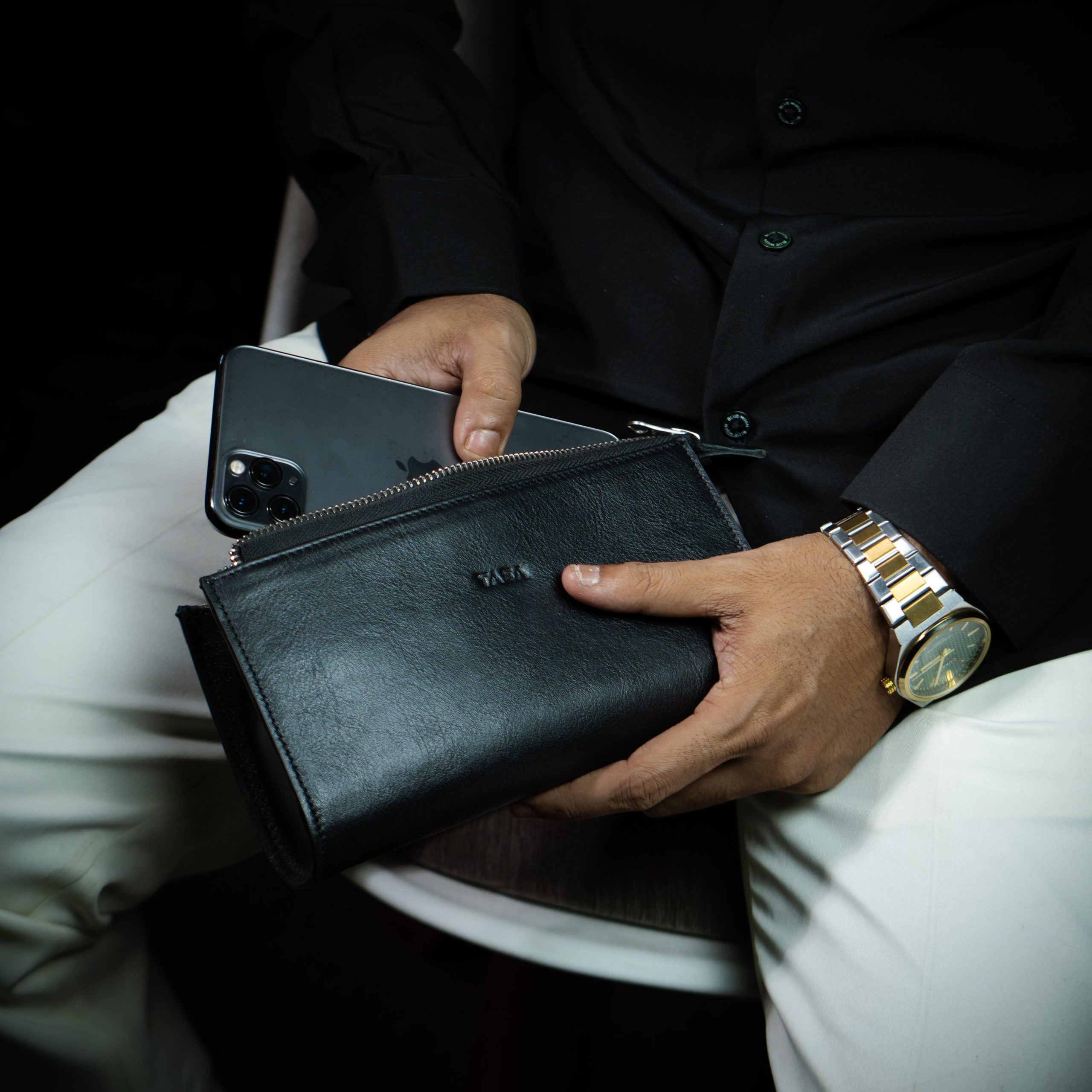 It can help you maintain organization. The Smart Organizer can hold items like your phone, charger, passport, headphones, cash, cards, documents, and notes. It is made from the best leather there is—full-grain cow leather. It is lined with leather and expensive twill fabric. Among other things, you can be pleased with the design and construction quality.