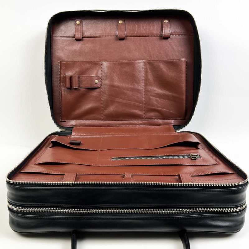 It can help you maintain organization. The Smart Organizer can hold items like your phone, charger, passport, headphones, cash, cards, documents, and notes. It is made from the best leather there is—full-grain vegetable-tanned cow leather. It is lined with leather and expensive twill fabric. Among other things, you can be pleased with the design and construction quality.